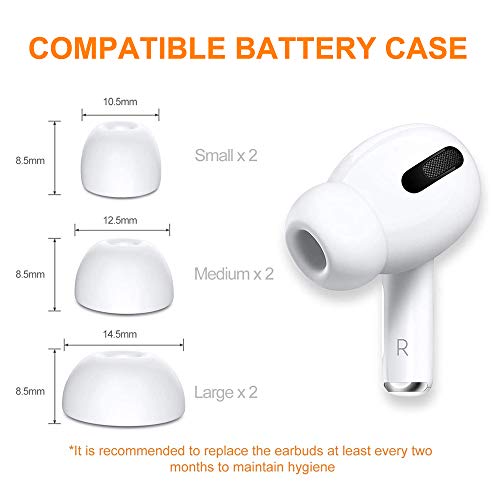AMMY - رؤوس الأذن البديلة لاير بودز برو، رؤوس أذن سيليكون مع صندوق تخزين محمول (توضع داخل علبة الشحن) 3 أزواج من امي - بلون أبيض لسماعات الرأس