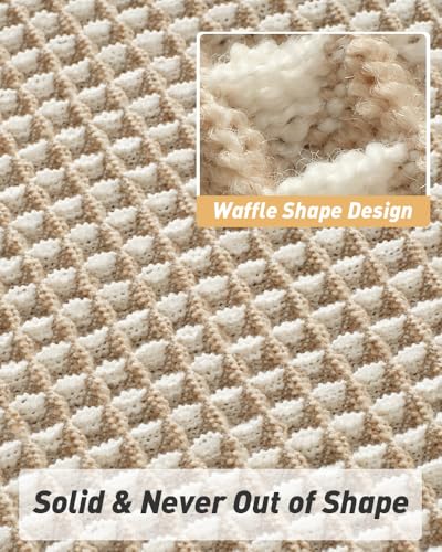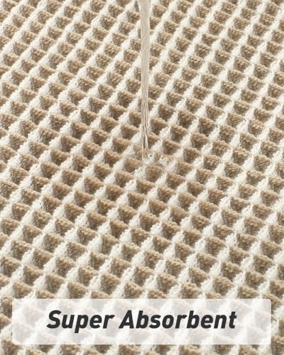 AMOAMI - سجادة مستطيلة من أموامي، مصنوعة من وافل القطن باللونين البني والكريمي، مخصصة للحمام، بتصميم ماشين. ماصة للماء ومضادة للانزلاق وقابلة للغسل في الغسالة. متوفرة بمقاس 43.18 × 60.96 سم