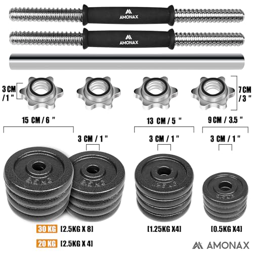 Amonax - مجموعة أوزان دمبل قابلة للتعديل من الحديد المصبوب بوزن 30 كيلوجرام للرجال والنساء، لتدريبات القوة واللياقة البدنية في المنزل والجيم، بوزن اليد من اموناكس