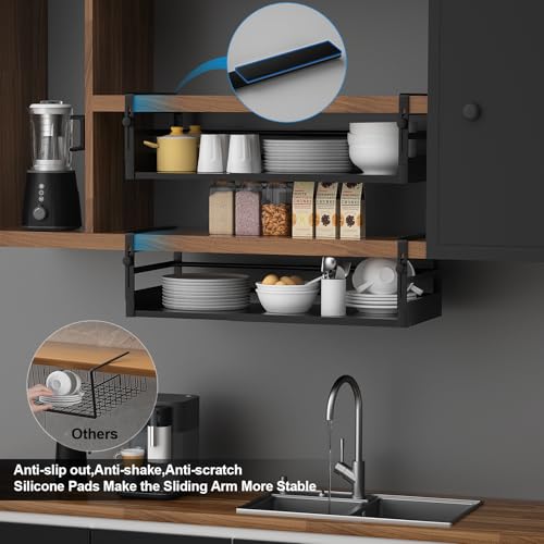 AmonHouseware - منظم سلة تحت الرف، رف تخزين قابل للتعديل تحت دواليب التخزين المعلقة، حامل معلق بطول قابل للتمدد 33 سم - 53 سم للمطبخ ودولاب المؤن والمكتب ورف الكتب ودولاب التخزين من امون هاوس وير، بلون أسود، 2 قطعة
