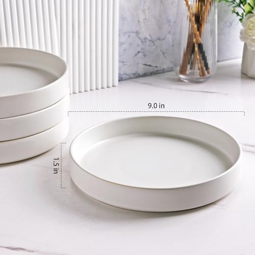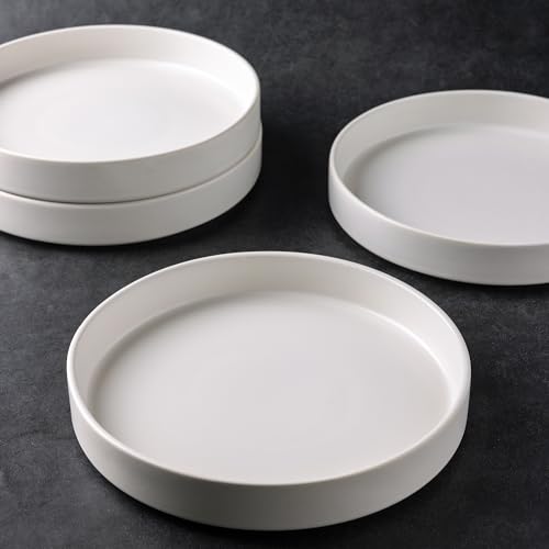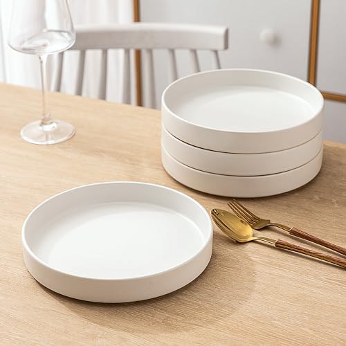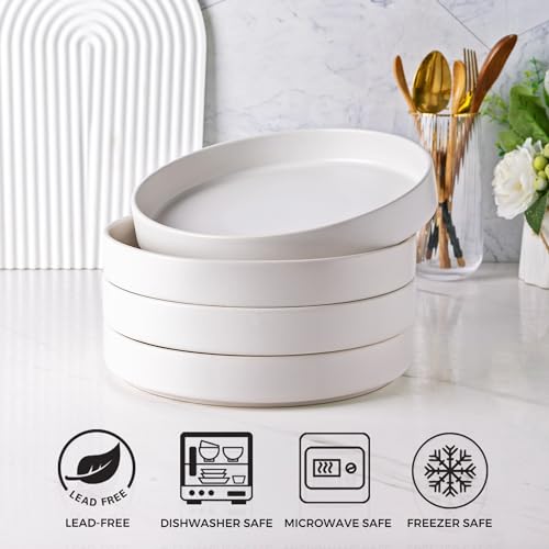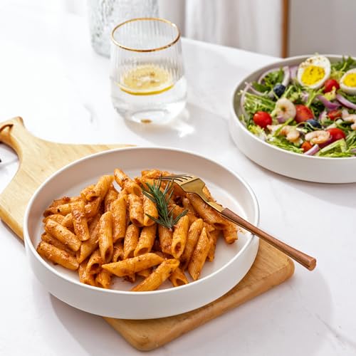 AmorArc - أطباق عميقة للمكرونة 22.8 سم لتقديم السلطة سعة 0.84 لتر واسعة قابلة للتكديس من السيراميك والسلطة والفواكه والخبز آمنة للاستخدام في الميكروويف طقم 4 قطع أبيض غير لامع امور ارك