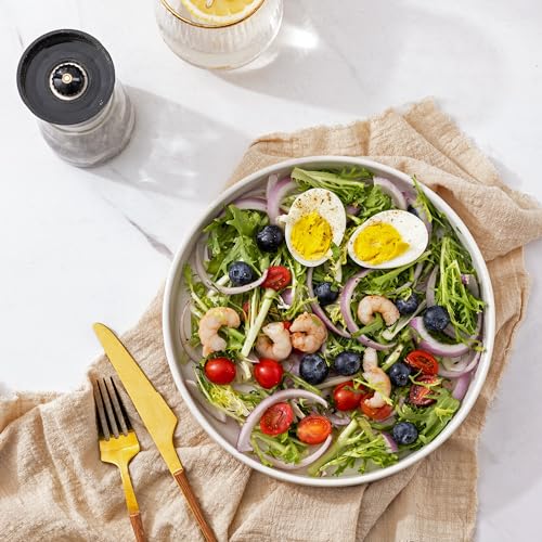 - 22.8 سم؛ متعددة الاستخدامات: مثالي للأطعمة الصلبة والسائلة مثل السلطات والمكرونة واليخنات. يتسع الطبق الواحد لوجبتين أو ثلاثة بحجم عادي بسهولة، فهو يتميز بتصميم عميق وعريض يحافظ على الطعام في الطبق ويمنع سقوطه على الترابيزة! مثالية للعشاء العائلي والحفلات وتقديم الطعام في المطاعم.