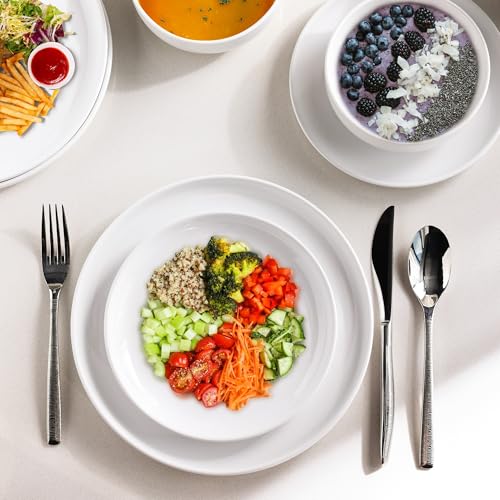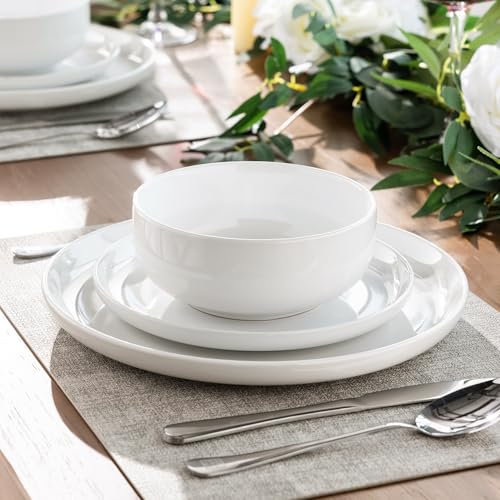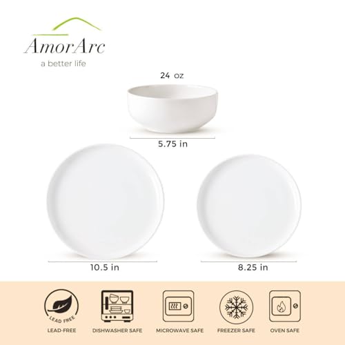 AmorArc - طقم ادوات مائدة من السيراميك مكون من 4 قطع من امور ارك، اطباق واوعية من البورسلين، مجموعة اطباق مقاومة للخدش، مجموعة اطباق امنة للاستخدام في غسالة الصحون والميكروويف والفرن، ابيض، 4-12 قطعة