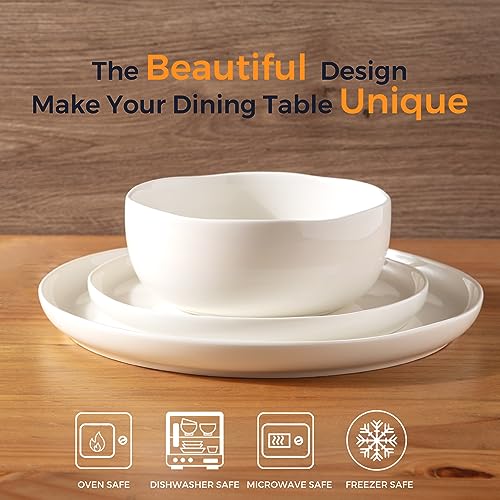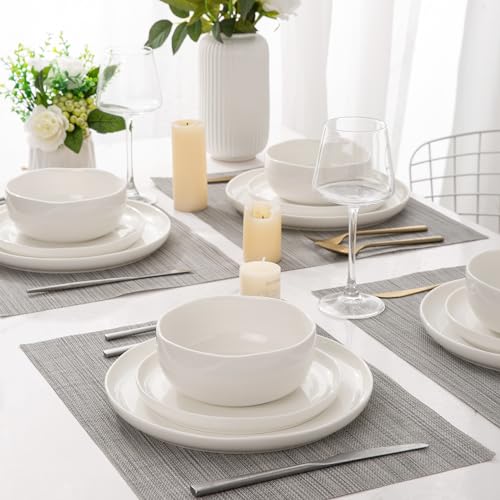 AmorArc - أطباق وبولات من الخزف الحجري بحافة مموجة، طقم عشاء من السيراميك بمقاومة عالية للكسر والتشقق، آمن للاستخدام في غسالة الأطباق والميكروويف من امور ارك، مجموعة أطباق لـ 4 أشخاص - (12 قطعة)