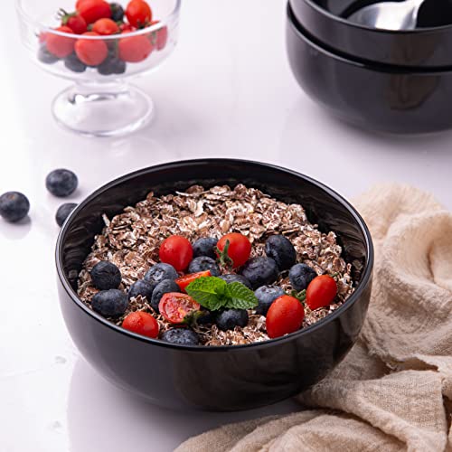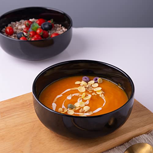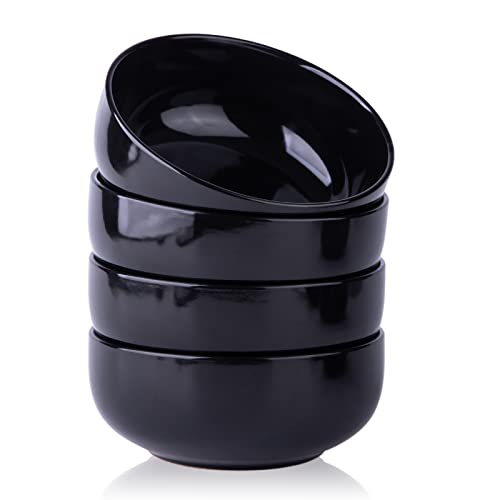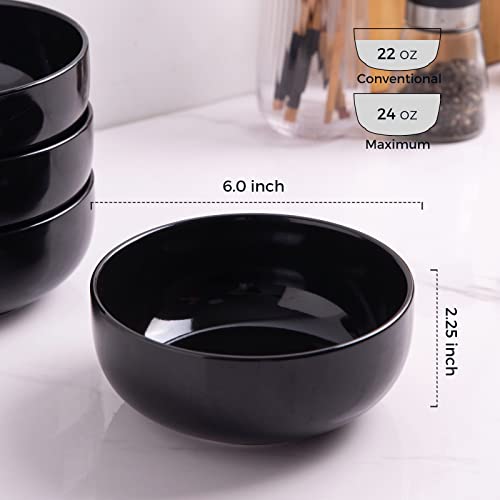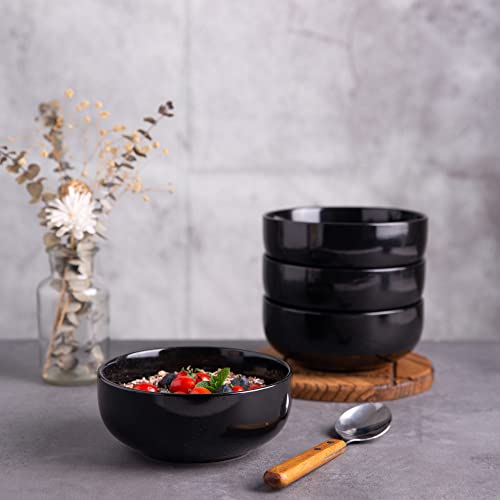 AmorArc - امور ارك مجموعة اوعية حبوب من الخزف الحجري للمطبخ شوربة السيراميك سعة 22 اونصة 4 قطع للحبوب والحساء والوجبات الخفيفة امنة للاستخدام في الميكروويف وغسالة الصحون اسود