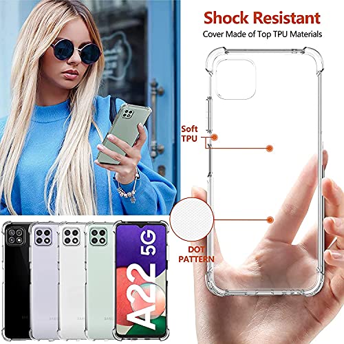 AMPLE - جراب حماية لهاتف جالاكسي A22 الجيل الخامس 5G من امبل، [نحيف ورفيع] [مضاد للصدمات] جراب مرن من جل البولي يوريثين الحراري المرن والمطاط والسيليكون لسامسونج جالاكسي A22 5G (شفاف)