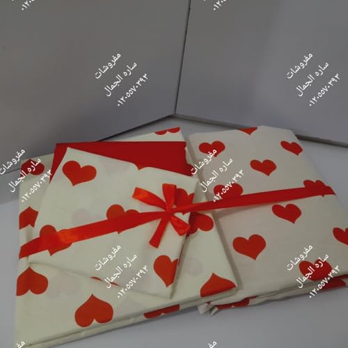 Generic - طقم غطاء لحاف قطن عامرية بنقشة قلوب حمراء، مقاس 220×240 سم مع خداديتين 50×70 سم