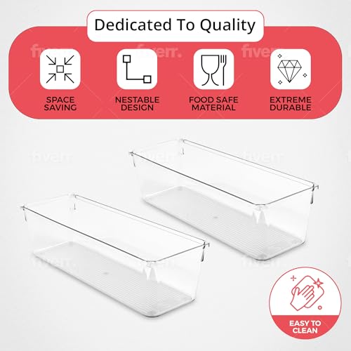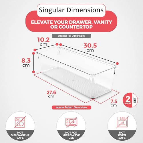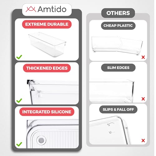 Amtido - مجموعة صواني تنظيم الادراج من امتيدو - حاويات بلاستيكية شفافة لاواني المطبخ ومستحضرات التجميل والطعام والقرطاسية - تستخدم في الادراج والخزائن والثلاجة وأسطح الطاولات (عبوتان - 10.2 × 30.5 × 8.3)