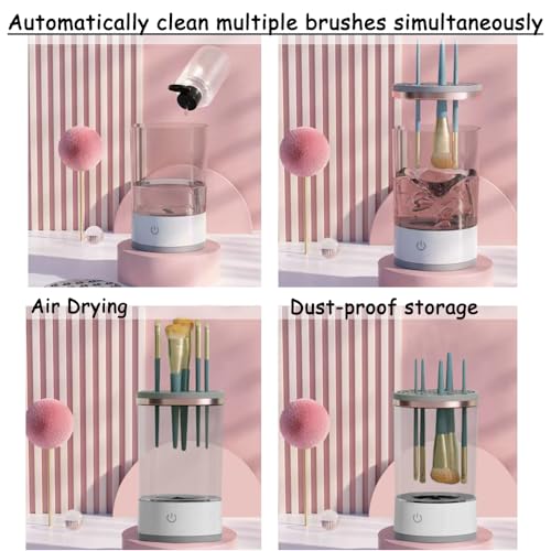AMYESE - ايميز منظف فرش المكياج 2024، الة تنظيف فرش المكياج الاوتوماتيكية، منظف فرش التجميل الكهربائي 3 في 1، منظم تجفيف بالهواء ومقاوم للغبار، اداة فرش المكياج، هدية رائعة للاصدقاء المكياج