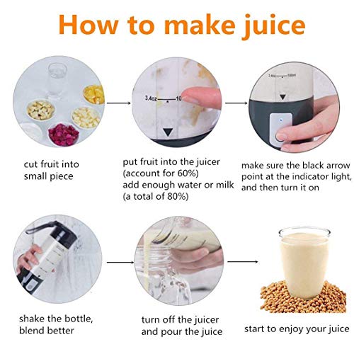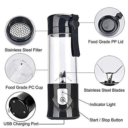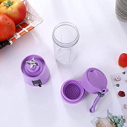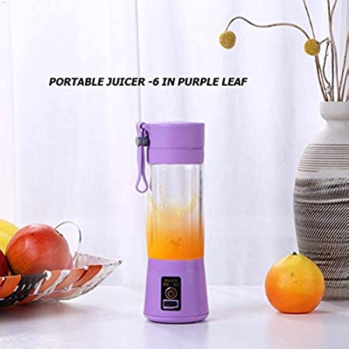 Amz - عصارة فاكهة كهربائية محمولة قابلة لإعادة الشحن بمنفذ USB بـ6 شفرات من ايه ام زد (لون أرجواني)، سعة 380 ملليلتر، 500.0 واط
