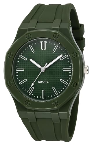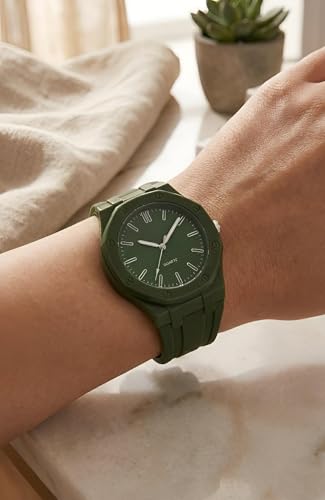Generic - ساعة يد أنيقة بإطار ثماني الأضلاع ومينا منقوشة بنمط الوافل وسوار سيليكون مرن لإطلالة راقية على الحياة النشطة والإبداع اليومي