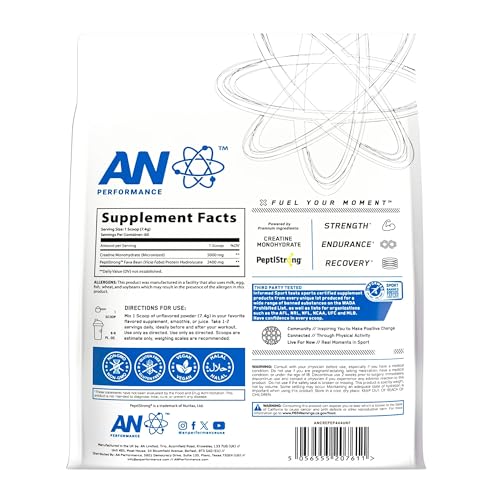 - سرّك لتحقيق الأداء الكامل: مكوّنات مدروسة سريريًا. نتائج فائقة. يوفّر ايه ان بيرفورمانس كرياتين+ ببتيد قوة بناء العضلات التي تحتاجها لتحقيق كل هدف، لأنك هنا لتتفوّق لا لتكتفي بالقليل.