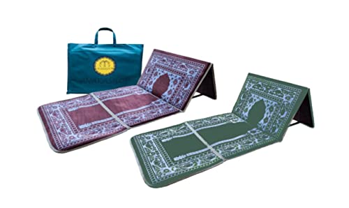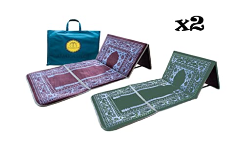 ANAKASHOP - اناكاشوب - 2 سجادة للصلاة والتامل مع مسند الظهر، مقعد مريح مبطن، سهل الحمل مع شنطة (بني/اخضر (×2)، 110 × 55 سم