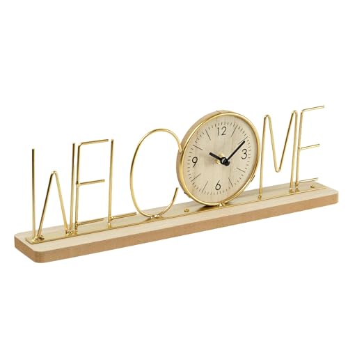 Generic - ساعة أنالوج - ساعة طاولة أنالوج مزخرفة بلمسة نهائية معدنية ذهبية وتصميم حروف ترحيبية، مثالية لطاولة الدراسة وغرفة المعيشة والمكتب والهدايا لمحبي ديكور المنزل الريفي الحديث