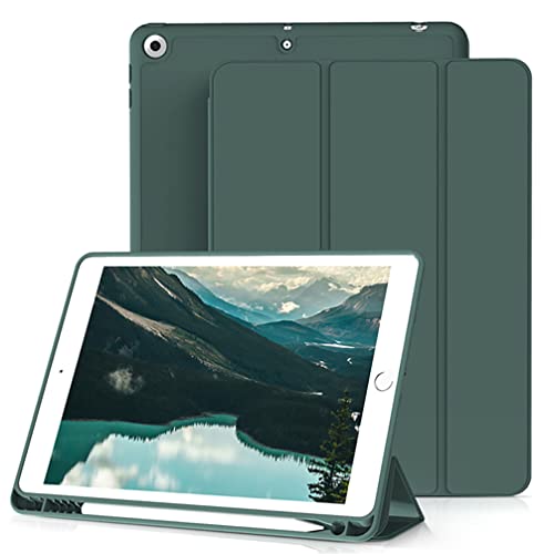 Anatch - جراب متوافق مع جهاز ايباد 9/8/7 (10.2 بوصة موديل 2021/2020/2019 الجيل التاسع/الثامن/السابع) من اناتش، بحامل قلم وظهر ناعم من البولي يوريثين الحراري، يتميز بخاصية النوم/ الاستيقاظ التلقائي، أخضر غامق