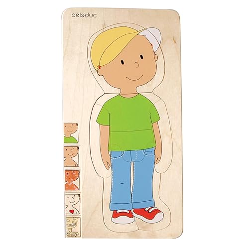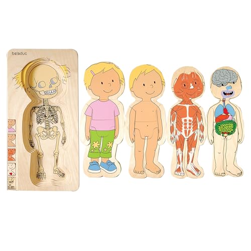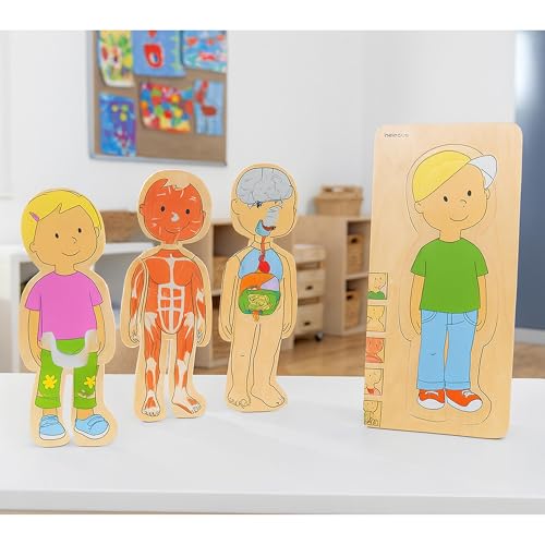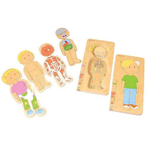 Constructive Playthings - بازل خشبية متعددة الطبقات من تشاناتومي - مجموعة للاولاد والبنات، 5 طبقات، تعلم جسم الإنسان للأعمار من 4 سنوات فما فوق