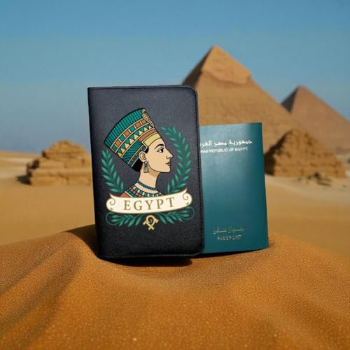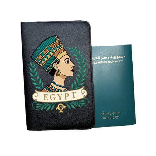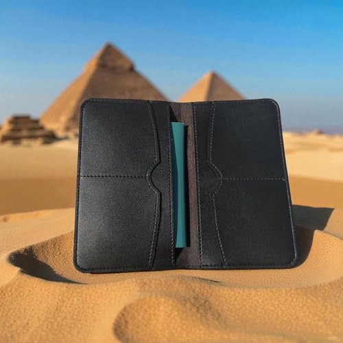 Generic - غطاء جواز سفر مستوحى من مصر القديمة - محفظة سفر سوداء من جلد البولي يوريثين مع فتحات للبطاقات - تصميم مطبوع DTF فرعوني - اكسسوار سفر للجنسين - فكرة هدية مصرية (تصميم رقم 3)