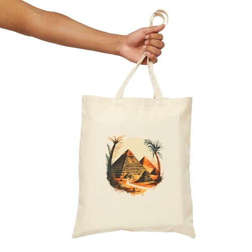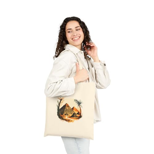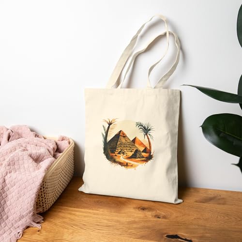 Generic - حقيبة قماش بتصميم أهرامات مصر القديمة - شنطة يد فنية بطابع فرعوني وتاريخي - مثالية لمحبي الآثار المصرية والسفر Ancient Egyptian Pyramid Art Tote Bag With Zipper-861