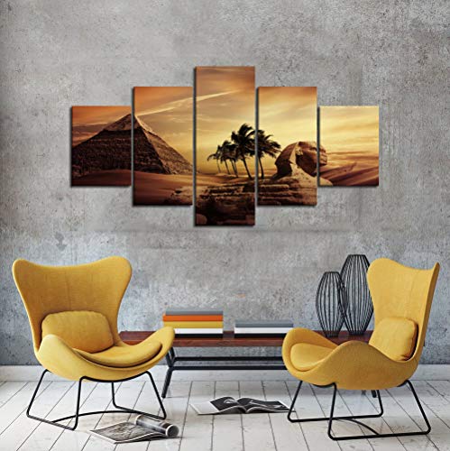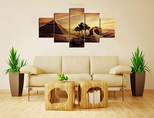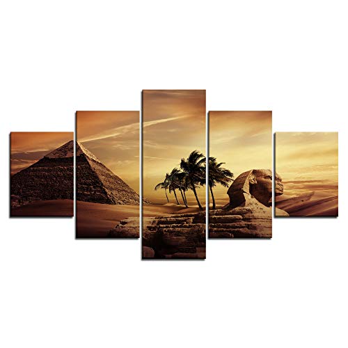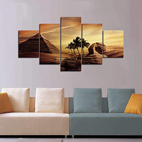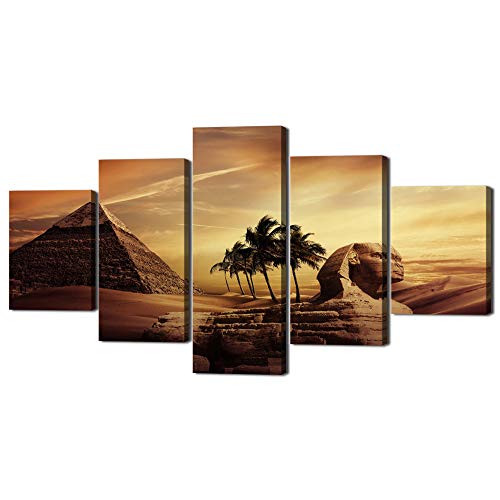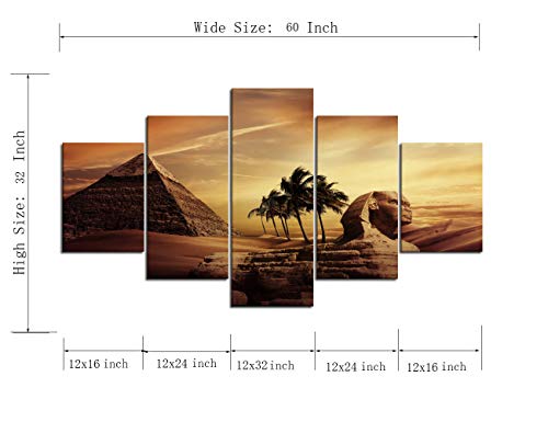 Yatsen Bridge - لوحة فنية كبيرة على القماش بتصميم هرم ابو الهول من انشنت ايجيبت سيكريتس لديكور المنزل وغرفة المعيشة 5 قطع متعددة الالواح مطبوعة HD باطار جاهز للتعليق 60 انش عرض × 32 ارتفاع