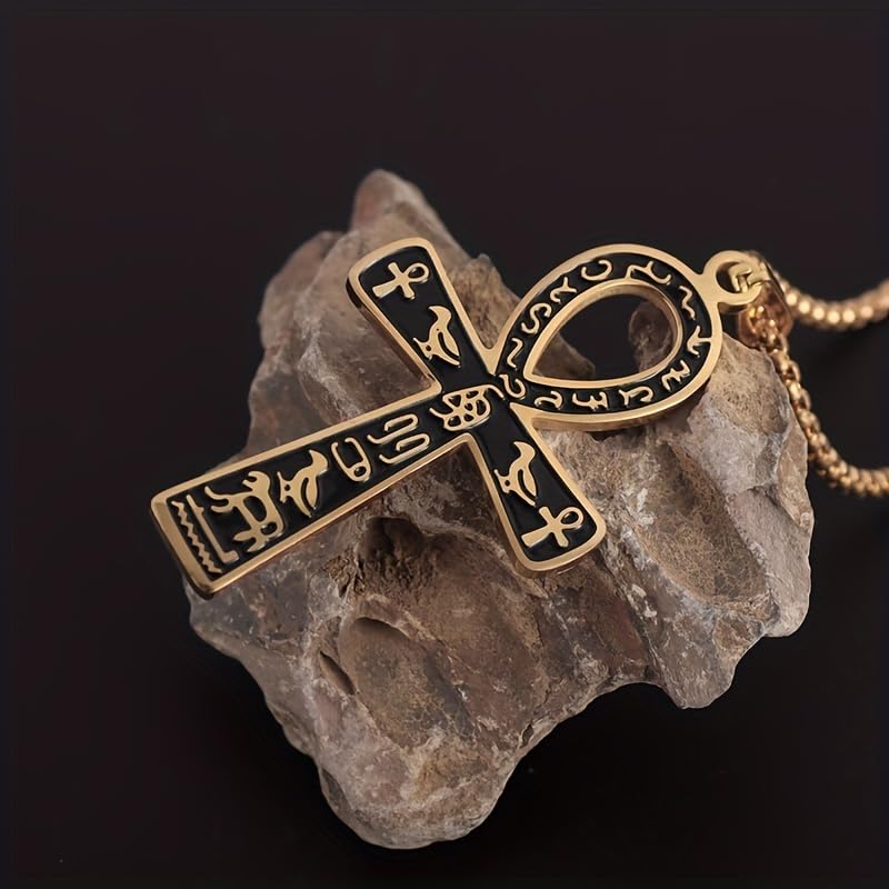 Generic - دلاية صليب عنخ امون المصري القديم - قلادة ذهبية اللون من الستانلس ستيل، هدية مجوهرات، تميمة فرعونية