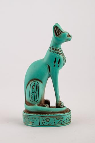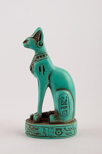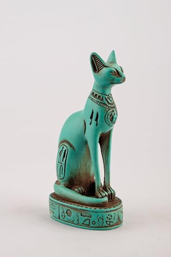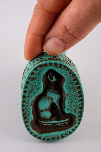 Generic - تمثال قطة باستيت المصرية القديمة من الحجر الأخضر الثقيل مع الجعران على صدرها ورموز نقوش هيروغليفية حول القاعدة، صنع في مصر