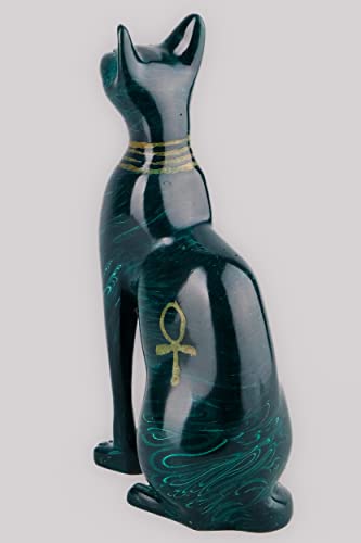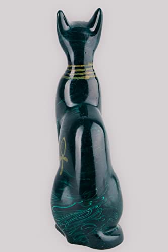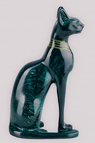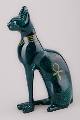 Generic - تمثال فرعوني مصري قديم منحوت باليد – بتصميم قطة فرعونية للديكور المنزلي – مجسم للإلهة باستت – أخضر – صنع في مصر