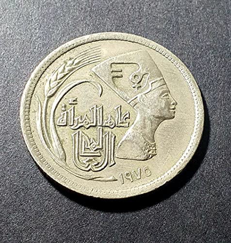 Generic - عملة مصرية قديمة نادرة ٥ قروش تذكاري عام المرآة ١٩٧٥م النادرة و الشحيحة، رمادي، الألومنيوم