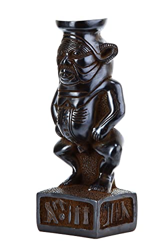 Generic - تمثال الإله بيس المصري القديم، إله فرعوني ثانوي بمصر القديمة على شكل قزم برأس كبير وعيون جاحظة ولسان بارز وساقين متقوستين وذيل كثيف، مصنوع من حجر صلب أسود، صنع في مصر