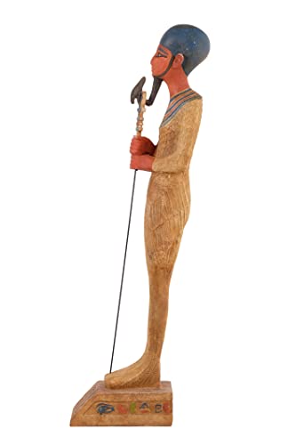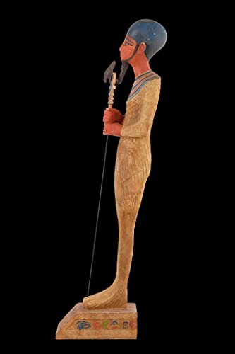 Generic - تمثال مصري قديم بتصميم الإله بتاح خالق وراعي الحرفيين والمهندسين المعماريين ينتمي إلى ثلاثية ممفيس، مصنوع من الحجر الجيري الثقيل والكبير، مطلي يدويا، صنع في مصر