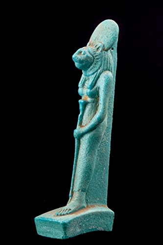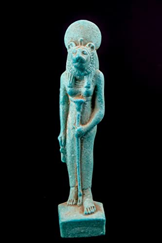 Generic - تمثال مصري قديم لسخمت، مكتوب ايضا من سخمت، في الدين المصري، إلهة الحرب ومدمر اعداء إله الشمس ري. تمثال حجر/خزفي فريد من نوعه صنع في مصر، أخضر