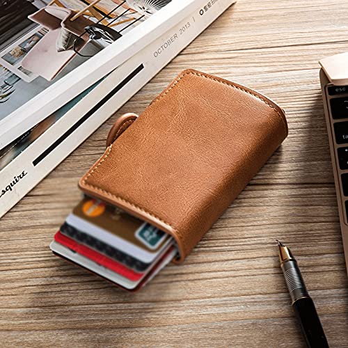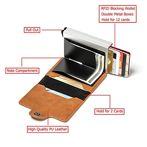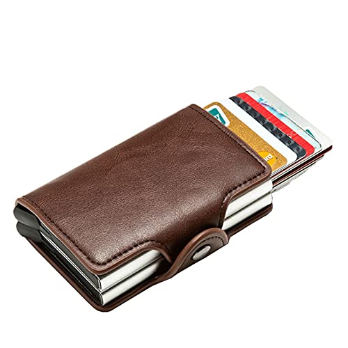 Ancoree - محفظة للرجال من انكوري صندوق مزدوج لحمل البطاقات مضادة للسرقة مصنوعة جلد البولي يوريثين حافظة نقود للسفر اللون: بني .