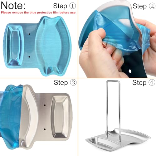 ZYLONE - رف مسند للغطاء والملاعق، منظم حامل غطاء المقلاة، منظم غطاء المقالي من الستانلس ستيل 304 لتخزين الحساء والملاعق وادوات تزيين المطبخ (فضي)