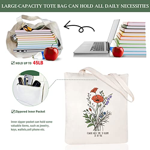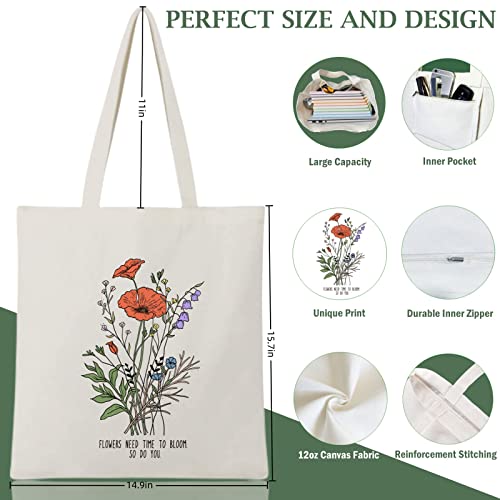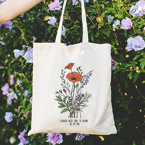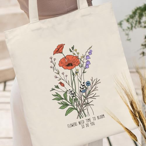 Andeiltech - شنطة يد كبيرة توت قماشية للنساء من انديلتيك، شنطة توت بتصميم زهور برية مطبوعة بنمط زهور برية قابلة لاعادة الاستخدام، شنطة بقالة قابلة لاعادة الاستخدام، زهور برية جمالية، مقاس L