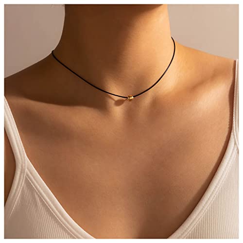 Andelaisi - قلادة شوكر من الجلد الاسود بتصميم بوهو من اندليسي، مزودة بحلية صغيرة من الخرز القوطي، قلادة من الجلد القوطي، مجوهرات للنساء والفتيات