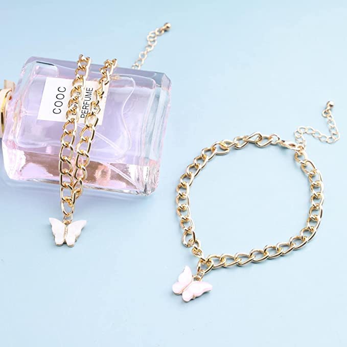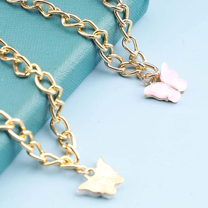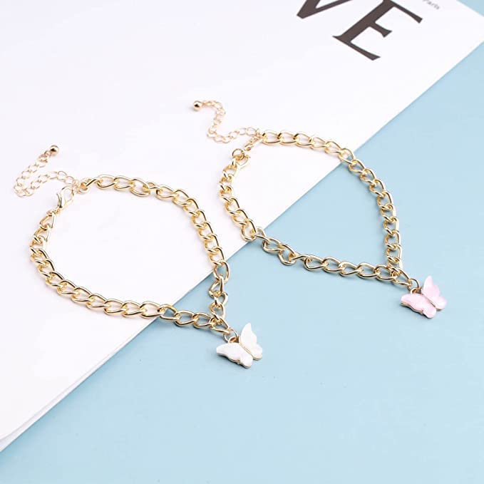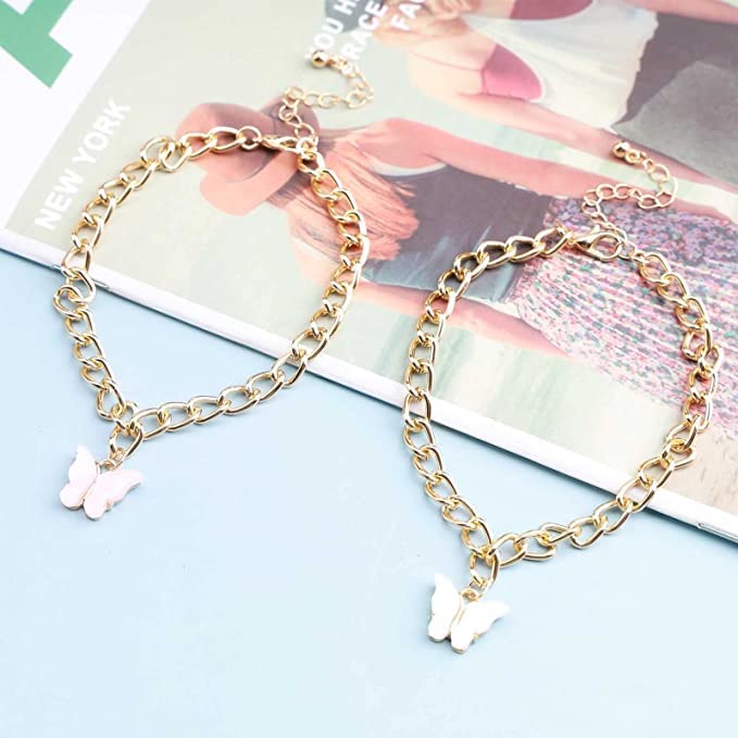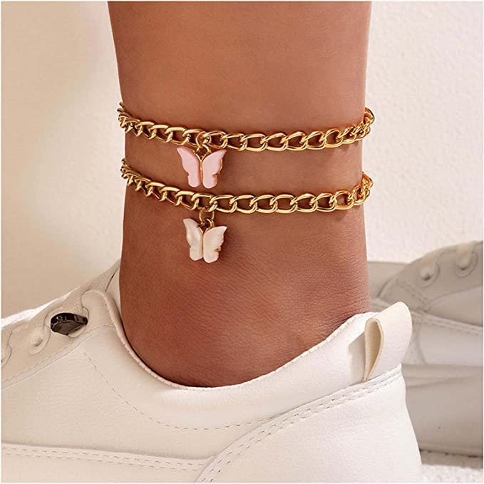 Andelaisi - خلخال بوهو بطبقات وشكل فراشة من اندلايسي ذهبي سلسلة بنمط بانك وفراشة ثلاثية الابعاد للنساء والبنات قطعتان معدن