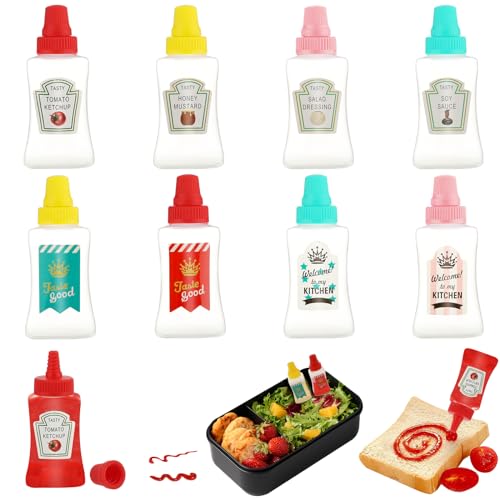 Andibro - زجاجات صلصة صغيرة مع غطاء لولبي قوي من انديبرو من 8 قطع، زجاجات صغيرة للتتبيلات قابلة لإعادة الملء، زجاجات كاتشب متعددة الأغراض للصلصة والشواء والخروجات بسعة 23 مل