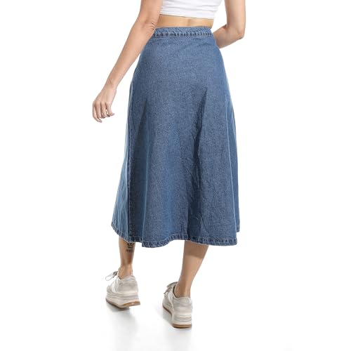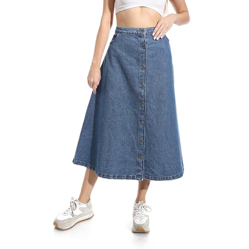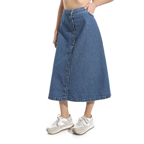 Andora - اندورا جيبة جينز ماكسي واسعة بازرار للاغلاق بلون ازرق - مقاس L