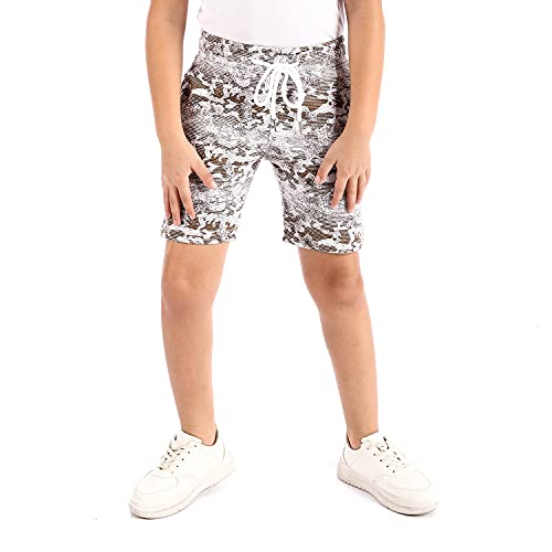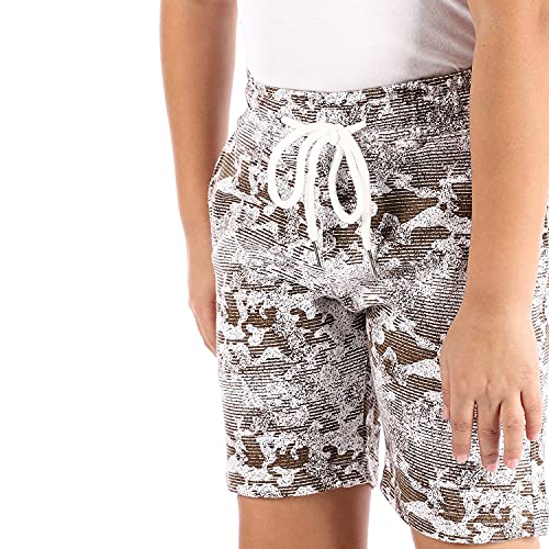Andora - شورت قطيفة مضلع ومنقوش سهل الارتداء للاولاد من اندورا - بني وابيض، قطن