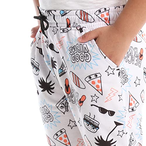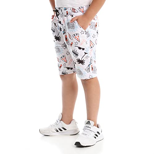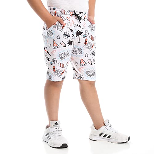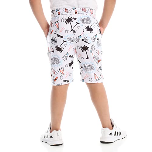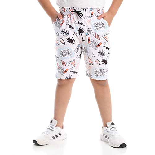 Andora - شورت للاولاد صيفي بتصميم مطبوع عليه "Good Vibes" باستك عند الخصر - شورت كاجوال ابيض من اندورا، قطن