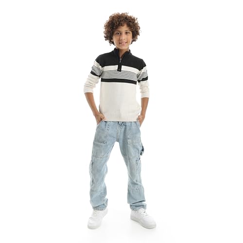 Andora - بلوفر محبوك بنصف سوستة للإغلاق وأشرطة للأولاد من اندورا