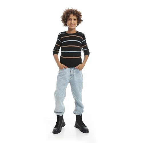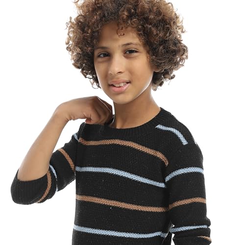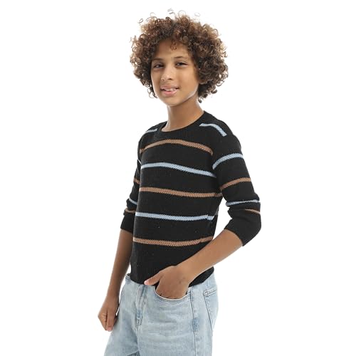 Andora - اندورا بلوفر مخطط برقبة دائرية ضيقة للاولاد - اسود_ 10