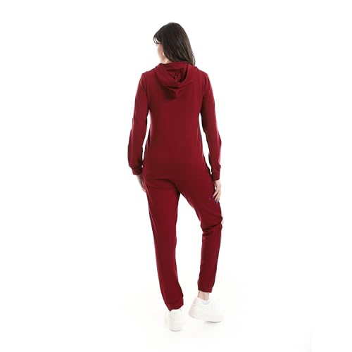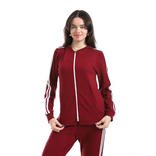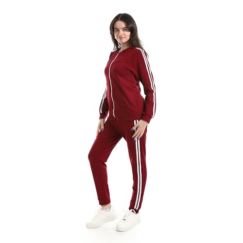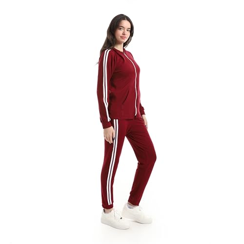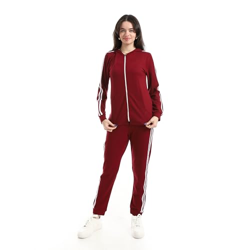 Andora - بدلة رياضية بغطاء للرأس وبنطلون بلون أحمر غامق، مقاس ميديوم M
