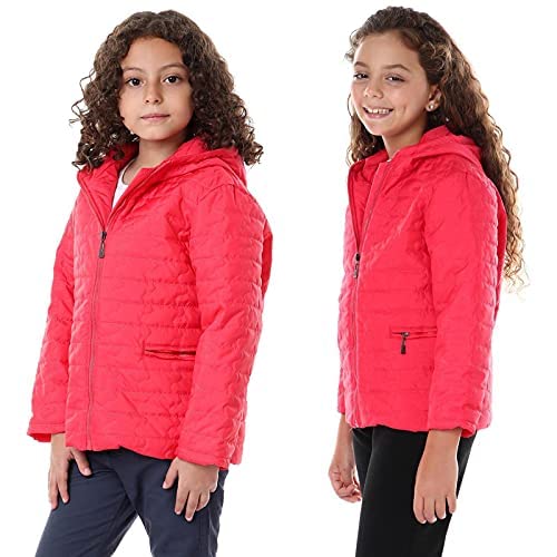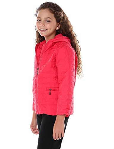 Andora - جاكيت بغطاء للرأس مبطن من القطن مصمم بجيوب غير ظاهرة وسوستة للبنات من اندورا، أحمر، مقاس لعمر 12 سنة