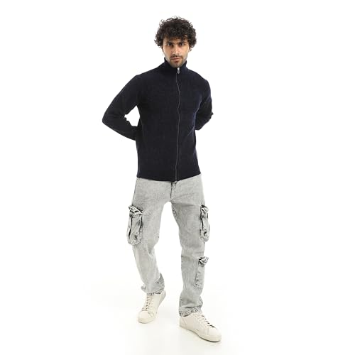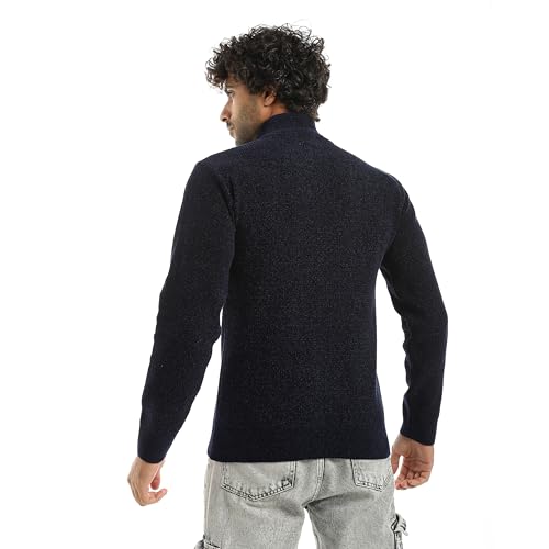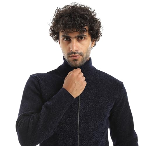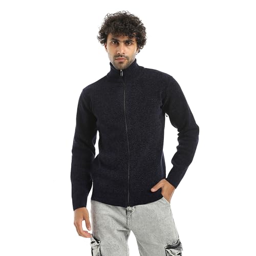 Andora - بلوفر مخطط بأكمام طويلة وسوستة للإغلاق من اندورا - لون كحلي_ مقاس 4 اكس لارج