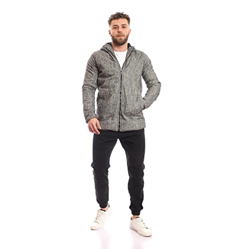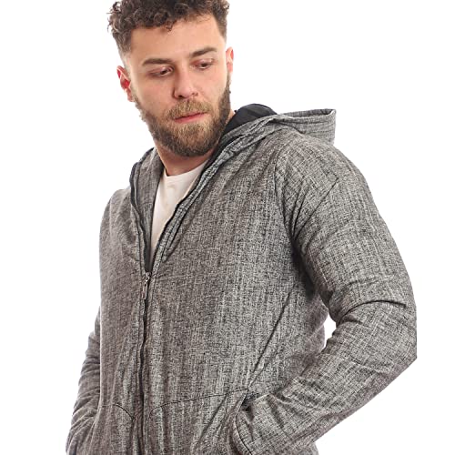 Andora - جاكيت كتان طويل مزود بغطاء رأس ملتصق بالياقة للرجال من اندورا