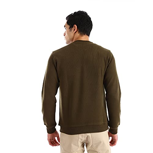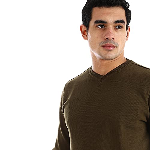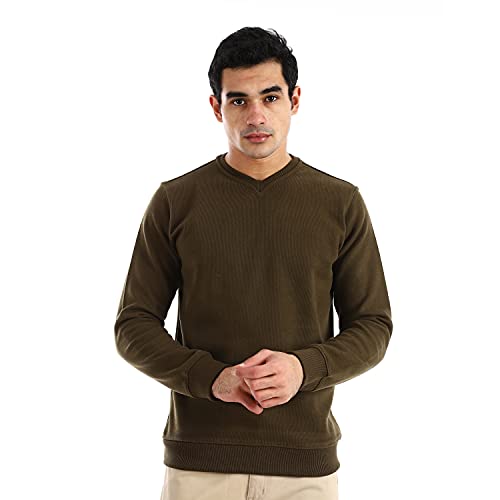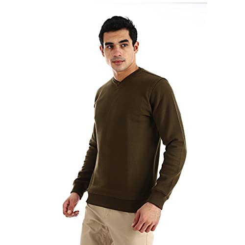Andora - سويت شيرت رجالي من اندورا برقبة على شكل حرف V سادة - سويت شيرت زيتوني