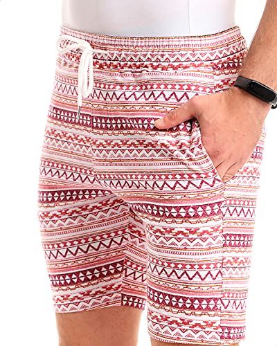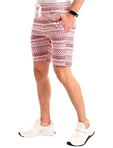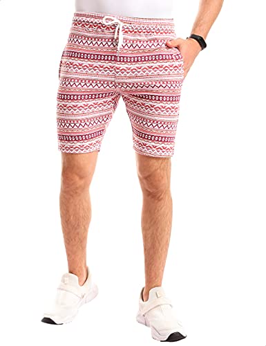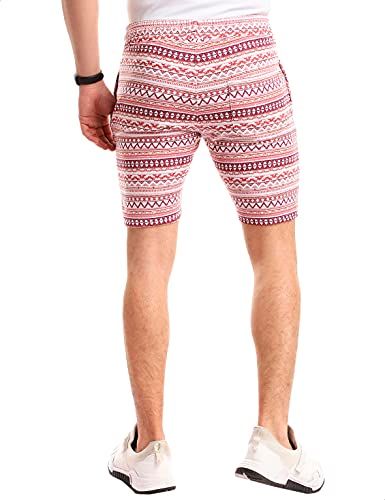 Andora - شورت قطن منقوش قصة ضيقة بأستك ورباط للرجال من اندورا - نبيتي وابيض، 3XL