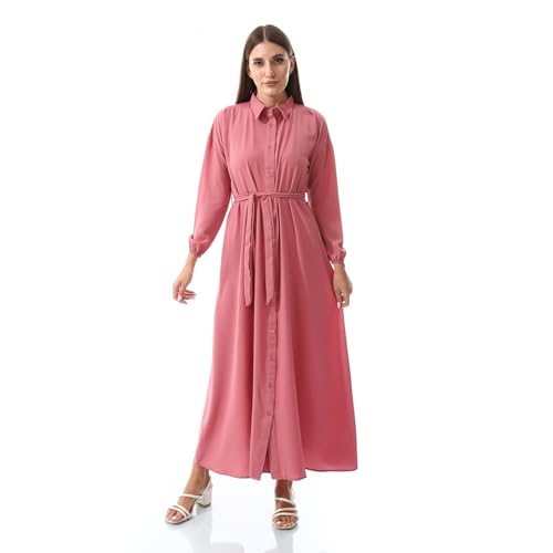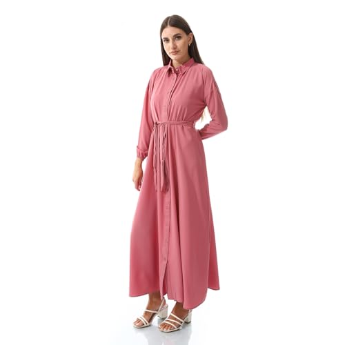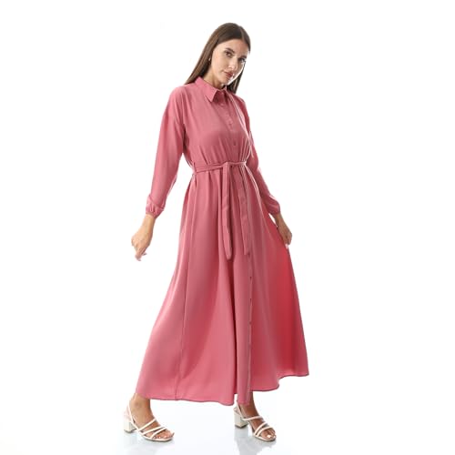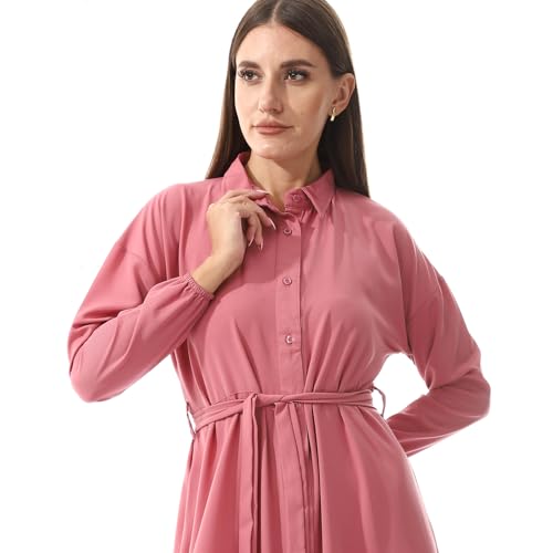 Andora - اندورا فستان بنمط ذاتي مع حزام - اوركيد بينك، مقاس L، للنساء