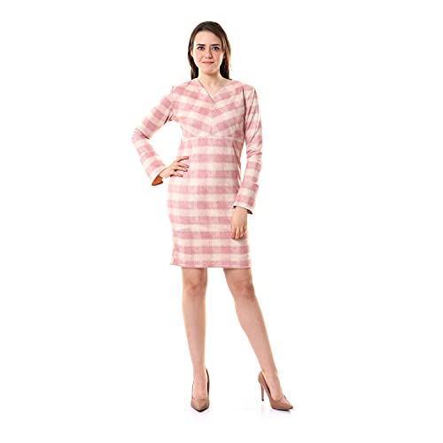 Andora - فستان كاروهات كشمير كاجوال برقبة شكل V وكم طويل للنساء من اندورا