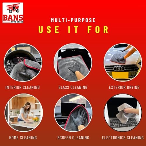 Generic - فوطة مايكروفايبر سميكة للغاية 1200 جم/م² فائقة الامتصاص وخالية من الوبر ومضادة للخدوش ومتعددة الأغراض للسيارة والمنزل والمكتب من اندرو، رمادي، 40×40 سم